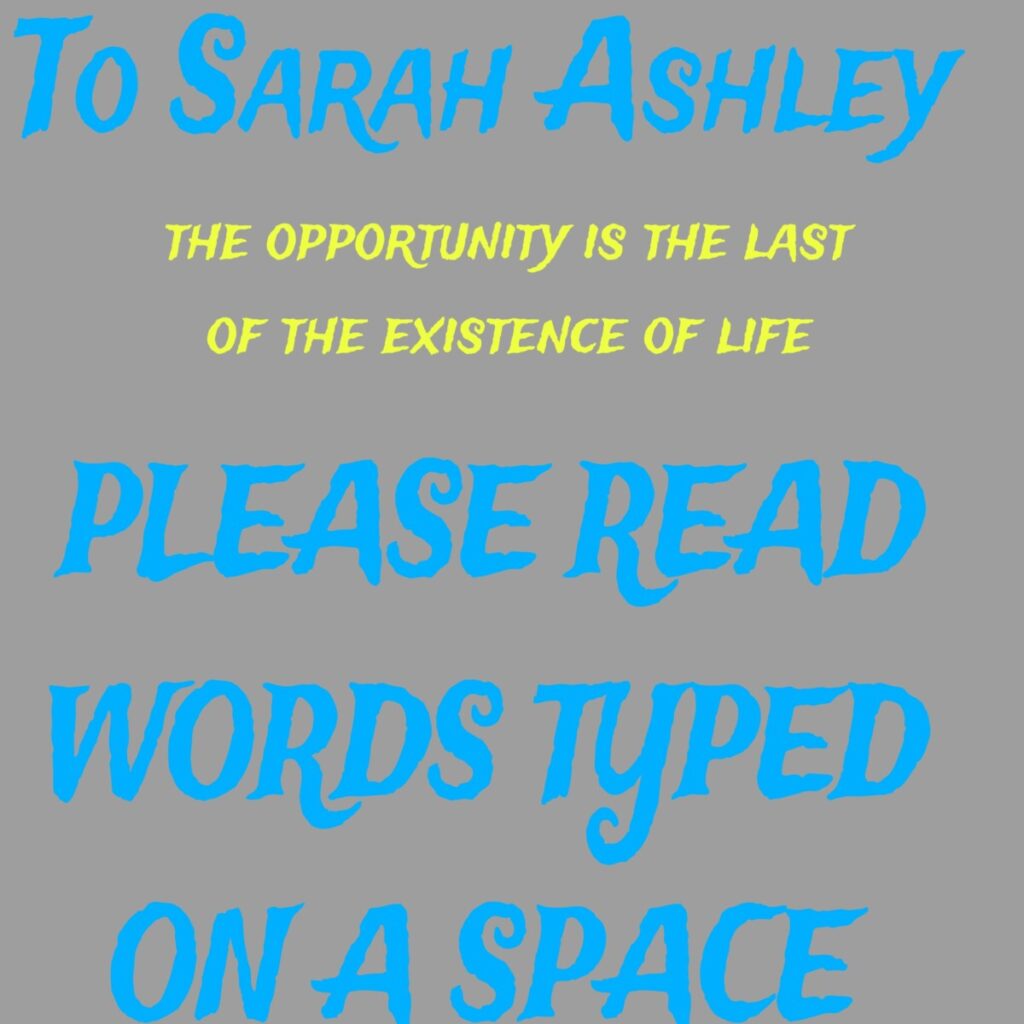 a needed reality is the notice Sarah Ashley not harmed and or affected she needs to be at the opportunity to find so that I Kieal Michael can interpret her conscious mind as what has been damaged or capable of an existence of life